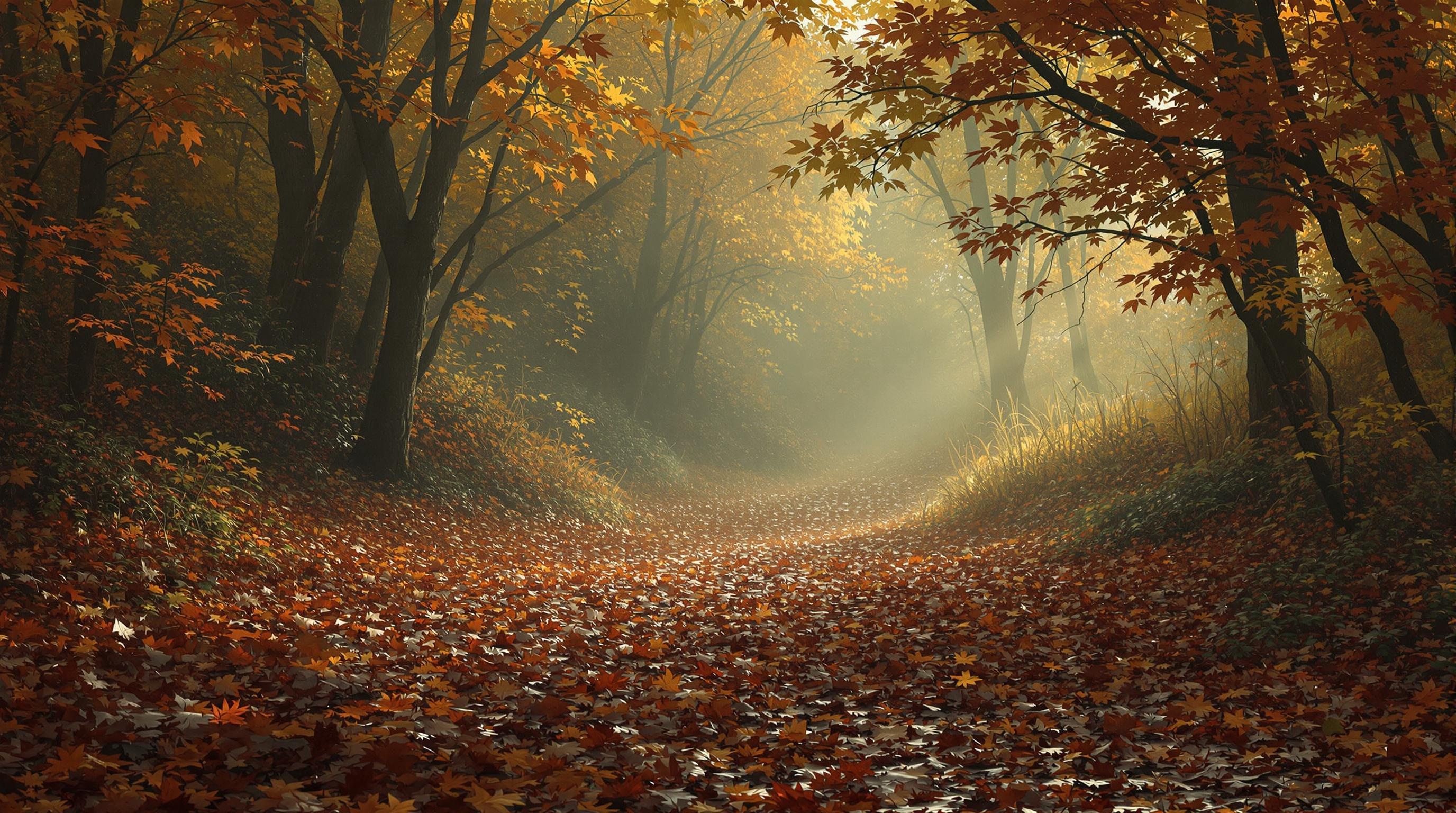 Final prompt: A serene autumn scene with fog and shadows, capturing both peace and tension.